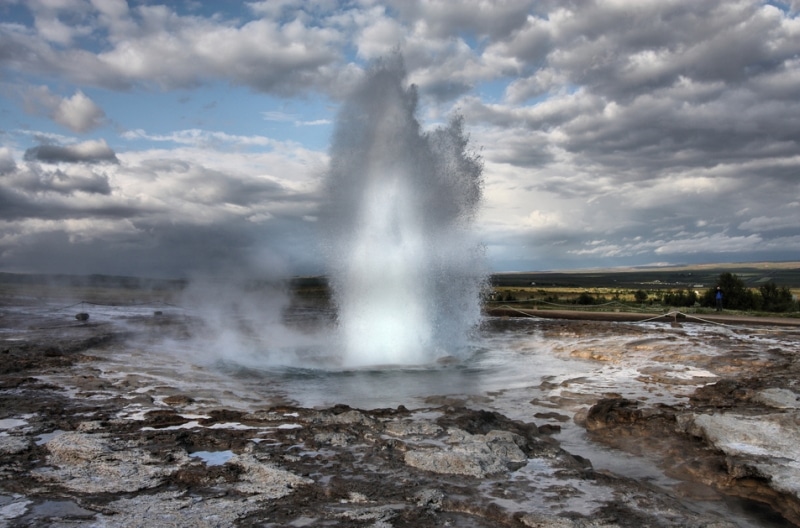 Dans ce champ islandais, il y a présence de deux grands geysers : Geysir et Strokkur. Le premier a donné leur nom aux geysers. Il provient d’un verbe islandais se traduisant par « jaillir ». L’activité d’un geyser est cependant très capricieuse, et Geysir ne se donne plus en spectacle depuis un tremblement de terre survenu en 2000. Le deuxième geyser, Strokkur, est le plus actif d’Islande avec des éruptions d’une vingtaine de mètres dans les airs toutes les 6 à 10 minutes. Saisissant !
