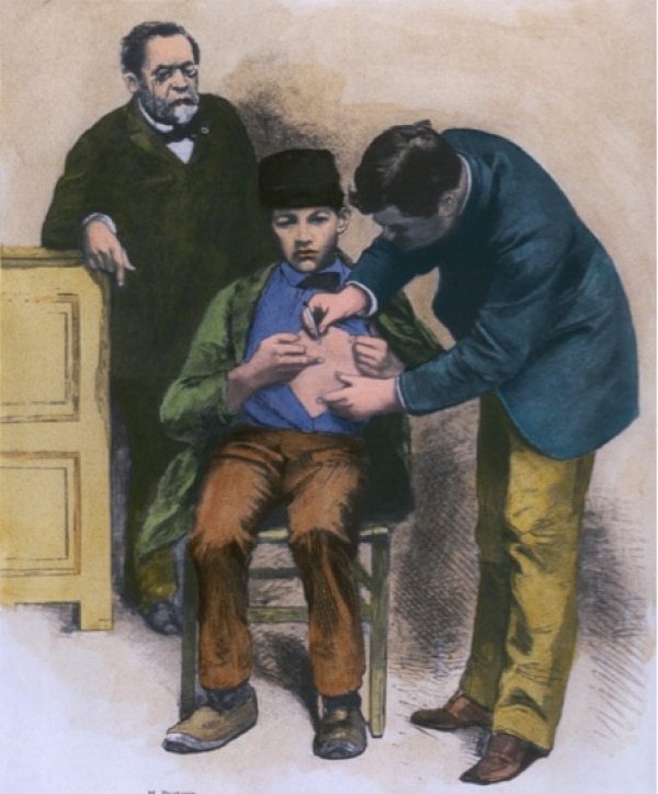 Le 6 juillet 1885, un jeune berger français se fait mordre par un chien enragé. À cette époque, la rage est une maladie qui tue autant les animaux que les humains. Un microbiologiste réputé décide alors de lui inoculer un vaccin de sa fabrication. Et ça marche ! L’enfant n’attrape pas la maladie et devient le premier humain immunisé par vaccination.