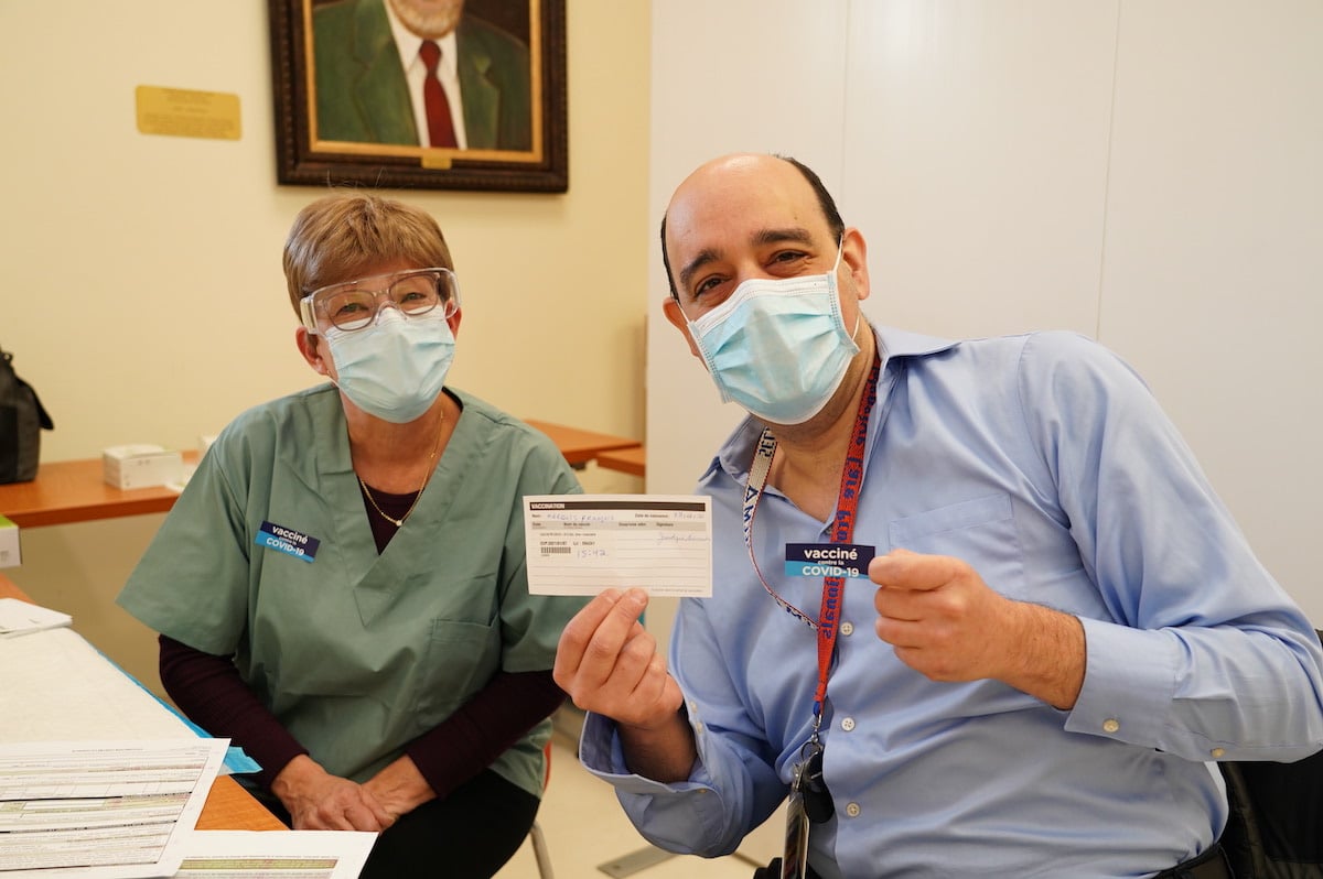 Le Dr François Marquis, chef des soins intensifs de l’Hôpital Maisonneuve-Rosemont, a reçu son vaccin contre le COVID-19 le 7 janvier dernier. Photo fournie par le CIUSSS de l’Est-de-l’Île-de-Montréal