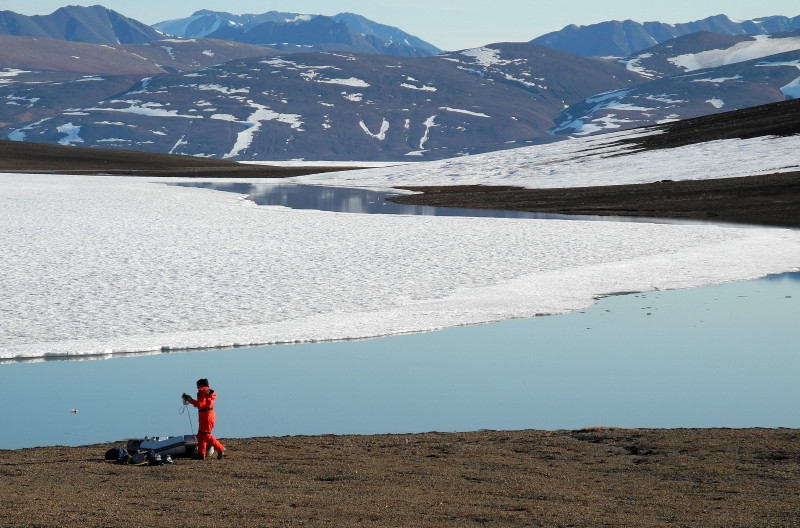 Si les zones peu profondes, proches des rives, dégèlent l’été et abritent une population restreinte de bactéries, la zone centrale de ce lac est habituellement gelée jusqu’au fond, et à longueur d’année. C’est du moins ce que pensaient les chercheurs jusqu’en 2013, lorsque des mesures radar ont montré la présence d’eau liquide au fond. « Avec une caméra GoPro, nous avons découvert beaucoup de vie bactérienne sur les sédiments du lac. Une surprise pour nous ! » raconte Warwick Vincent, du Centre d’études nordiques à l’Université Laval, qui a mené les expéditions et publié l’étude.