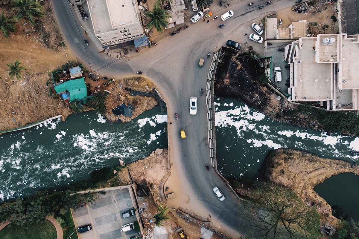 «Avant, ici, il y avait un lac », lance Vernon Douglas, alors que nous roulons à l’est de Bangalore à bord de son véhicule. Autour de nous, le plan d’eau a été remplacé par un dédale de rues où se dressent de petites maisons et des immeubles collés les uns sur les autres. Des politiciens et des Indiens de la classe moyenne y résident. À proximité se trouve une grande artère, rythmée par le bruit incessant des klaxons, où s’entassent des voitures, camions et autopousses à toute heure du jour.