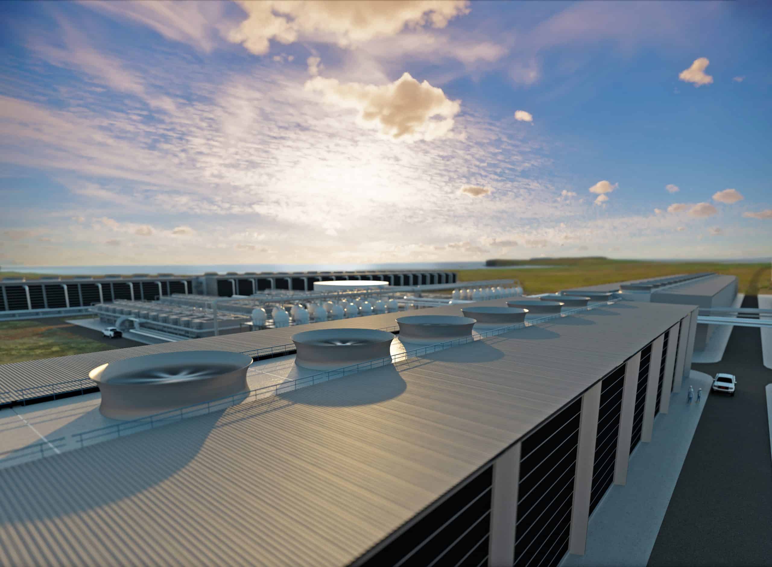 Vue d’artiste d’une usine de captation directe de l’air à grande échelle. Image: Carbon Engineering