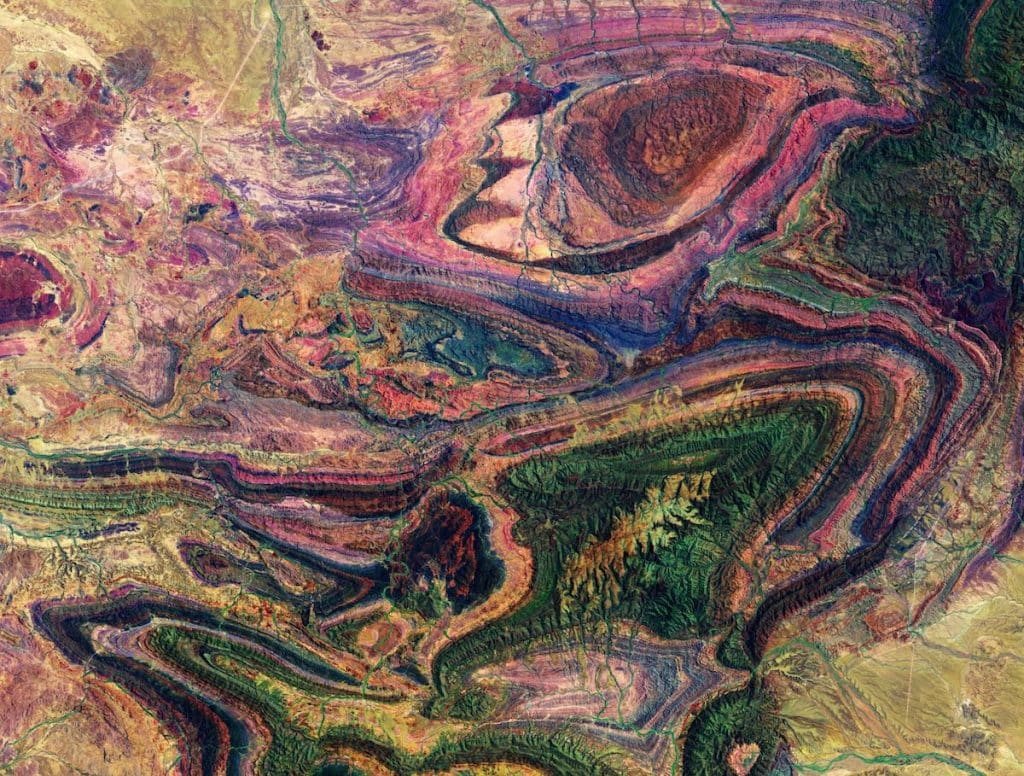 On se retrouve ici en Australie, où l’on voit les Flinders Ranges, la plus longue chaîne de montagnes du pays avec ses 400 km. Elle a été formée lorsque deux ou plusieurs plaques tectoniques sont entrées en collision, il y a 800 millions d’années.