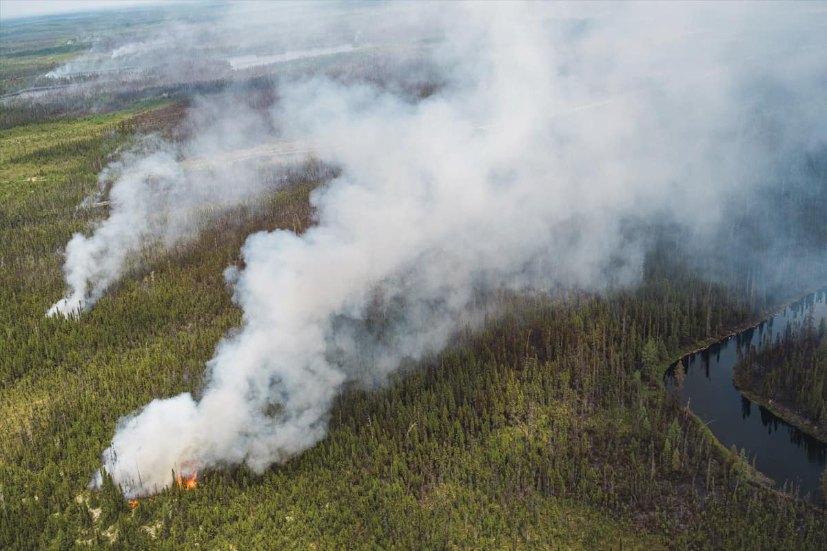 Un feu qui faisait rage en juin 2023 au nord de la communauté atikamekw d’Opitciwan. Photo : Renaud Philippe