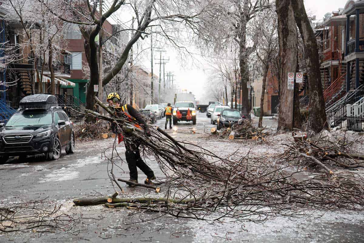 Nettoyage en cours le lendemain de la tempête de verglas d’avril 2023 à Montréal. Photo: Shutterstock
