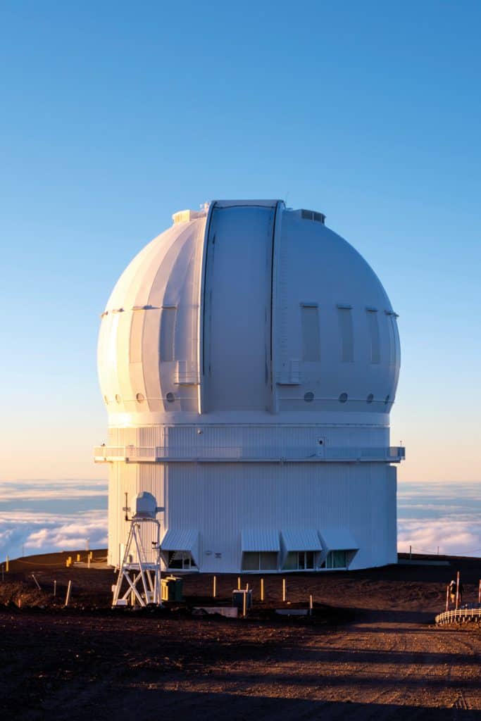 Je me pince ; c’est comme un rêve pour moi ! Me voilà à la base du Mauna Kea avec un astrophysicien québécois, Daniel Devost. S’élevant à 4205 mètres, le Mauna Kea est à la fois la plus haute montagne d’Hawaï, le domaine de divinités bienveillantes de la mythologie locale et un des meilleurs sites d’observation de la planète. Le complexe astronomique tout au sommet comprend 13 installations (télescopes et radiotélescopes), administrées par 11 pays. Une de ses installations est le télescope Canada-France-Hawaï (CFHT), un instrument de 3,6 mètres en fonction depuis 1979.