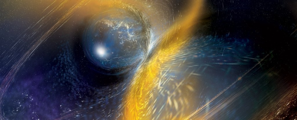 Ces deux astres massifs situés à environ 520 millions d’années-lumière de la Terre ont tournoyé l’un autour de l’autre avant de fusionner brutalement. Cette danse a  «froissé» le tissu de l’espace-temps, générant des ondes infinitésimales, les ondes gravitationnelles, qui ont pu être détectées.
