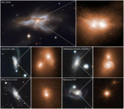 Des astronomes de l’université du Maryland ont assisté au spectacle grandiose de la fusion de plusieurs galaxies. En observant les derniers stades du rapprochement de paires de galaxies, ils ont deviné le ballet des trous noirs supermassifs centraux, juste avant leur collision.
