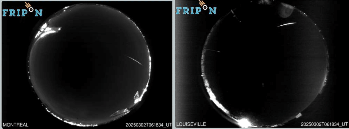 Six caméras branchées au réseau d’observation de météores DOMe ont immortalisé la chute d’une météorite près de Drummondville.