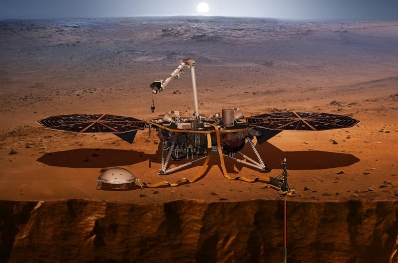 La sonde spatiale InSight, qui s’est élancée le 5 mai de la côte ouest des États-Unis, à bord de la fusée Atlas V 401, arrive le 26 novembre sur la planète rouge au cours d’un voyage de 6 mois. Son objectif principal? Poser un sismomètre au sol pour étudier la structure interne de Mars et comprendre sa formation en mesurant les tremblements martiens.