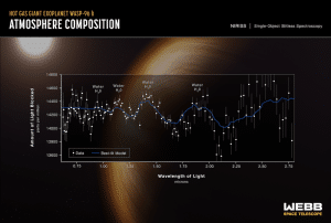 La NASA a publié la composition de l’atmosphère de l’exoplanète WASP-96 b, qui a pu être obtenue grâce à l’imageur et spectrographe sans fente dans le proche infrarouge (NIRISS), un instrument canadien. Selon Knicole Colón, astrophysicienne à la NASA, ces données indiquent la présence d’eau sous forme de vapeur dans l’atmosphère chaude de l’exoplanète, qui aurait la taille de Jupiter. WASP-96 b met 3 jours et demi à faire le tour de son soleil.