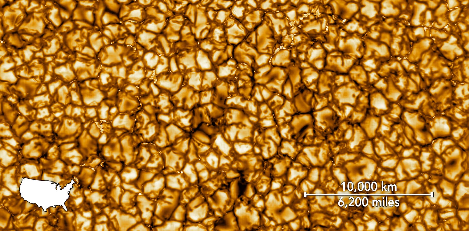 On distingue sur l’image des sortes de « cellules » de gaz bouillant, chacune d’elle ayant à peu près la superficie du Texas. Elles sont dues aux mouvements de convection de la chaleur de l’intérieur vers la surface de l’étoile. Le plasma, qui forme des taches claires au centre des structures, refroidit ainsi en surface avant de replonger (taches plus sombre).