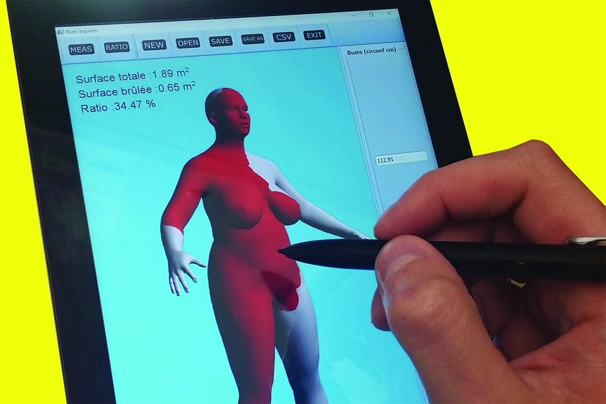 L’étudiante déplace doucement son doigt sur l’écran d’une tablette, délimitant des zones rouges sur un corps en trois dimensions. « J’ai créé un modèle de femme en surpoids sur lequel je peux peindre la surface brûlée de la peau. Le logiciel calcule ensuite le pourcentage de la superficie corporelle totale de la patiente qui est touchée. Ici, il l’estime à 3,19 % », commente Anaïde Thibault, qui amorcera en janvier son doctorat en génie des systèmes à l’École de technologie supérieure (ÉTS), à Montréal. L’application mobile sur laquelle elle « s’exerce », nommée LIO-B3D pour le moment, permettra une meilleure prise en charge des grands brûlés. L’idée était dans les cartons depuis 1995. Ce n’est que 20 ans plus tard, en 2015, que le projet s’est concrétisé dans les bureaux du Centre de recherche du Centre hospitalier de l’Université de Montréal (CRCHUM).
