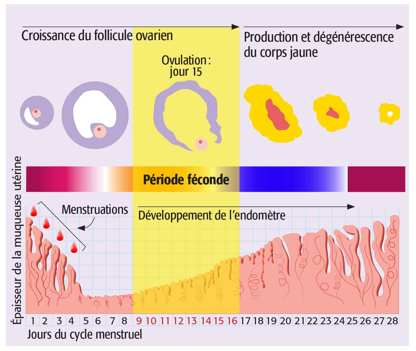 Le schéma ci-dessus est un exemple à titre indicatif pour une femme ayant un cycle de 28 jours.