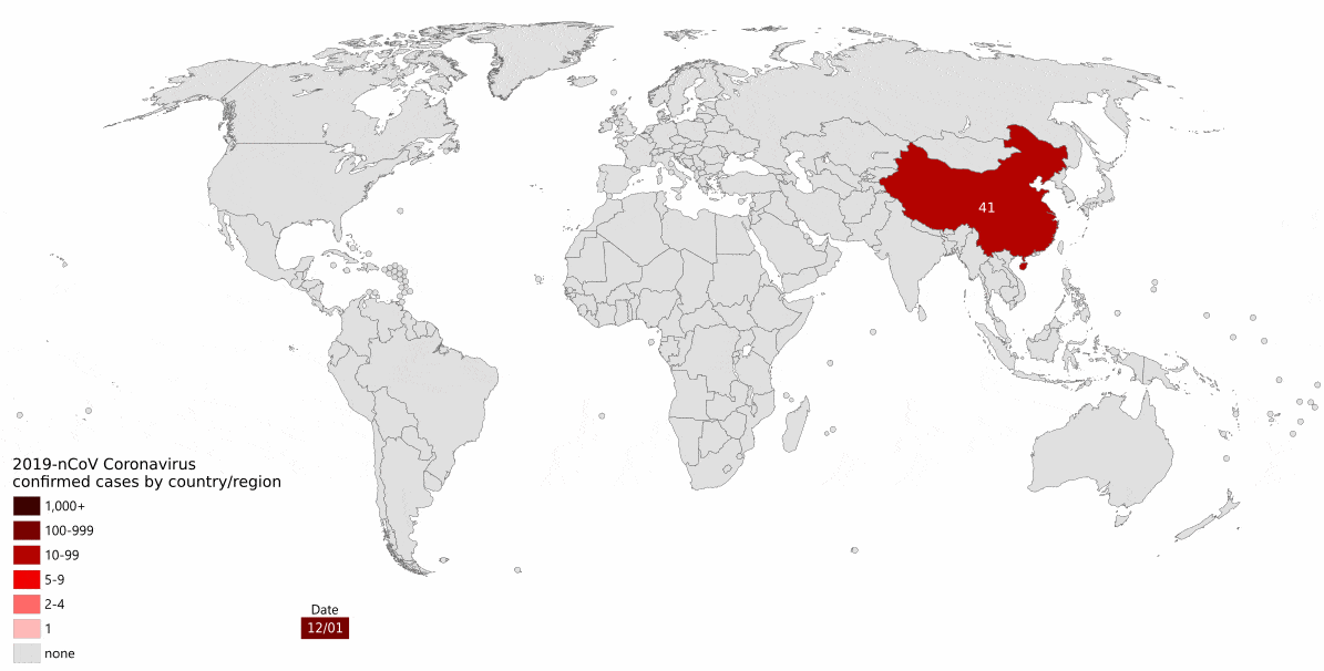 Évolution des cas confirmés du 12 janvier au 3 février 2020. Image: Wikimedia Commons