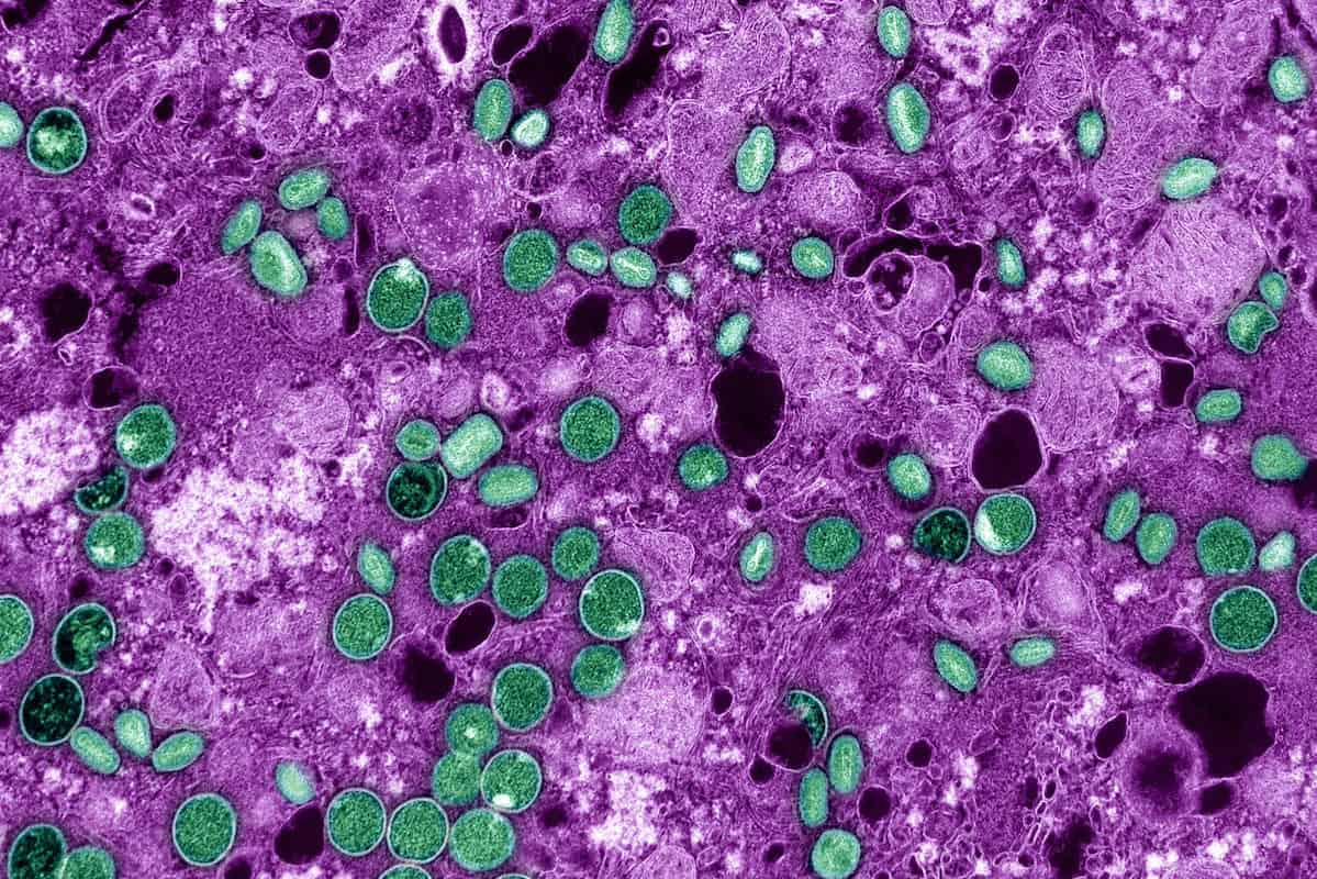 Voici une image montrant les particules virales du virus mpox (en vert) à l’intérieur d’une cellule infectée. Photo: NIAID.