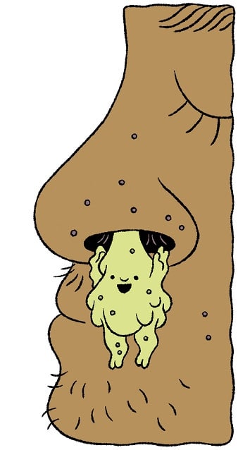 Lorsqu’il est question de nos mucus corporels, on pense d’abord à la morve. Mais ces fluides visqueux tapissent en réalité toutes nos muqueuses, c’est-à-dire les parois internes des voies respiratoires, du tube digestif et de l’appareil uro-génital. Le mucus garde ces parois humides et les protège en les lubrifiant. Quand on inspire, le mucus réchauffe et humidifie l’air, ce qui facilite les échanges gazeux dans nos poumons. Le mucus retient aussi les poussières et les micro-organismes pathogènes. À mesure que le corps sécrète du nouveau mucus, le vieux mucus se décolle. Il est expulsé, avec ses prisonniers, quand on se mouche, qu’on avale… ou par simple gravité, dans le cas du vagin. Voilà d’ailleurs pourquoi on considère que le vagin est « autonettoyant » !