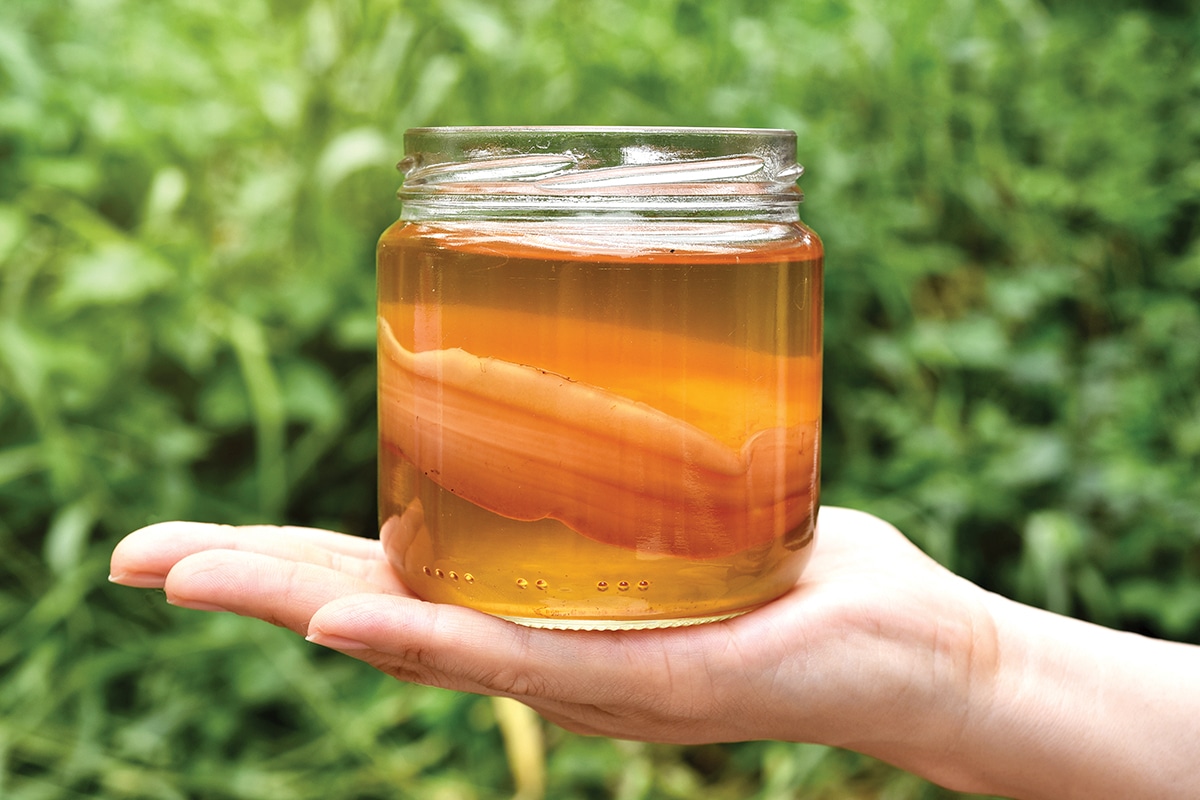 Si les consommateurs n’y voient qu’un sympathique liquide légèrement vinaigré et pétillant, les petits comme les gros producteurs connaissent eux le côté moins séduisant du kombucha : cette boisson à base de thé sucré est fabriquée grâce à une large membrane caoutchouteuse peu ragoûtante qui y a baigné jusqu’à l’embouteillage.