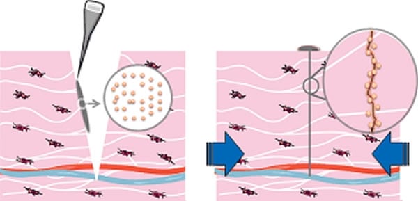 Magique? Presque! Ce sont les nanoparticules (silice, oxydes de fer) contenues dans la solution aqueuse, qui sont « adsorbées » par les tissus, et établissent quasiment instantanément une multitude de connexions entre les surfaces. Les nanoparticules peuvent être métabolisées par l’organisme et ne présentent apparemment pas d’effets secondaires…