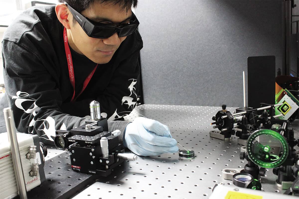Tianrui Zhao, du King’s College de Londres, a mis au point un endoscope photoacoustique composé de deux fibres optiques fines comme des cheveux. Image: King’s College de Londres