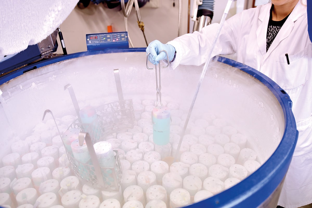 Cette noble mission a souvent comme point de départ de grandes cuves cryogéniques qui dorment dans le sous-sol du nouveau siège du CIRC, situé au cœur du Biodistrict du 7 e arrondissement de Lyon, en France, à proximité du Rhône. Cette quarantaine de cylindres renferment plusieurs centaines de milliers d’échantillons de globules rouges, de plasma, de sérum et d’autres fluides corporels conservés dans de l’azote liquide, à une température de -196 °C.