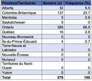 Présence de xylazine dans les échantillons saisis par provinces et territoires au cours de la période du 1er janvier au 31 mai 2023.