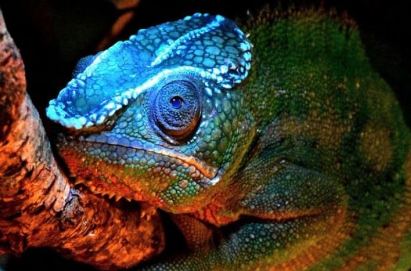 On connaît tous la capacité des caméléons de changer de couleur de peau pour communiquer avec leurs pairs, mais voilà qu’on a découvert que plusieurs espèces sont aussi… fluorescentes. Ce sont en fait les tubercules osseux de leur crâne, aussi présents parfois sur le reste de leur corps, qui émettent une fluorescence à travers la peau lorsqu’ils sont éclairés par de la lumière UV.