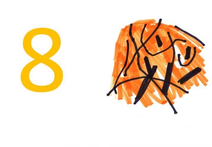 Lorsqu’on lui montre un chiffre, le huit dans ce cas-ci, le patient ne voit pas le chiffre mais plutôt un mélange de lignes comme des spaghettis. Image: Johns Hopkins University