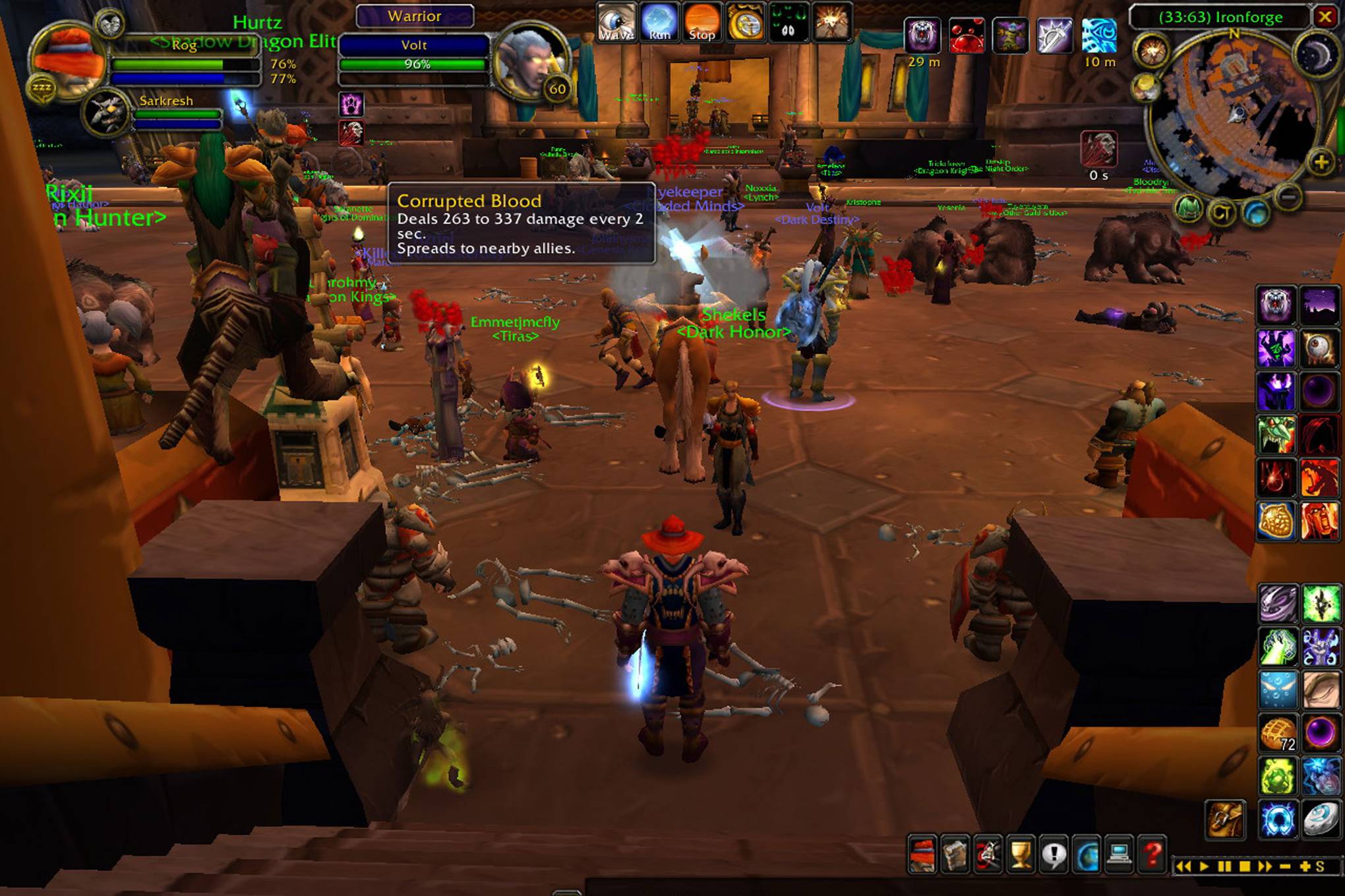 Des mises à jour permettent aux concepteurs d’ajouter périodiquement de nouveaux donjons, et c’est de l’un d’eux qu’a émergé la maladie virtuelle. À l’intérieur, les joueurs devaient combattre un monstre dont l’une des attaques, appelée « sang vicié », rendait leurs avatars malades, les drainant de leurs points de vie.