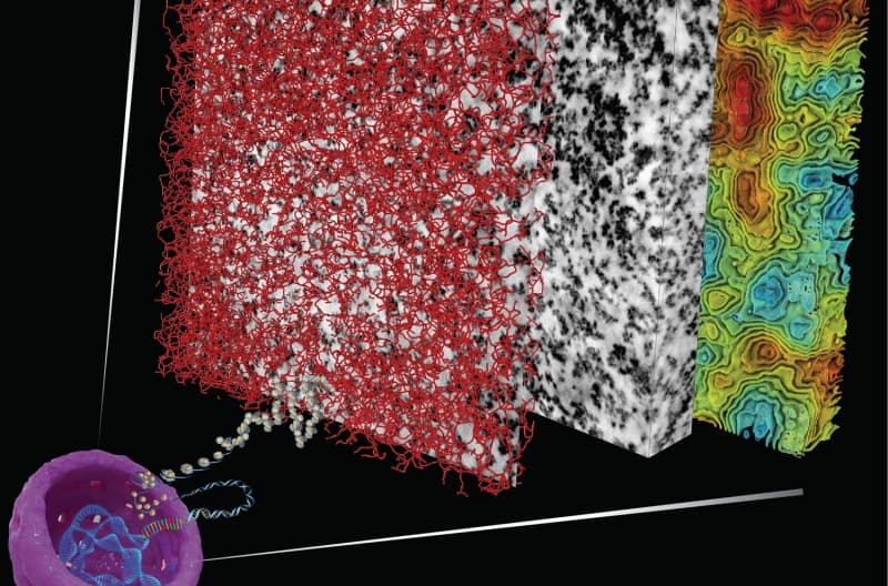Comment l’ADN se compacte-t-il à ce stade? Grâce à une « teinture » métallique particulière permettant de colorer l’ADN et à des techniques avancées de microscopie électronique, les chercheurs du Salk Institute et de l’université de California, à San Diego, ont révélé la structure 3D de la chromatine dans les chromosomes.
