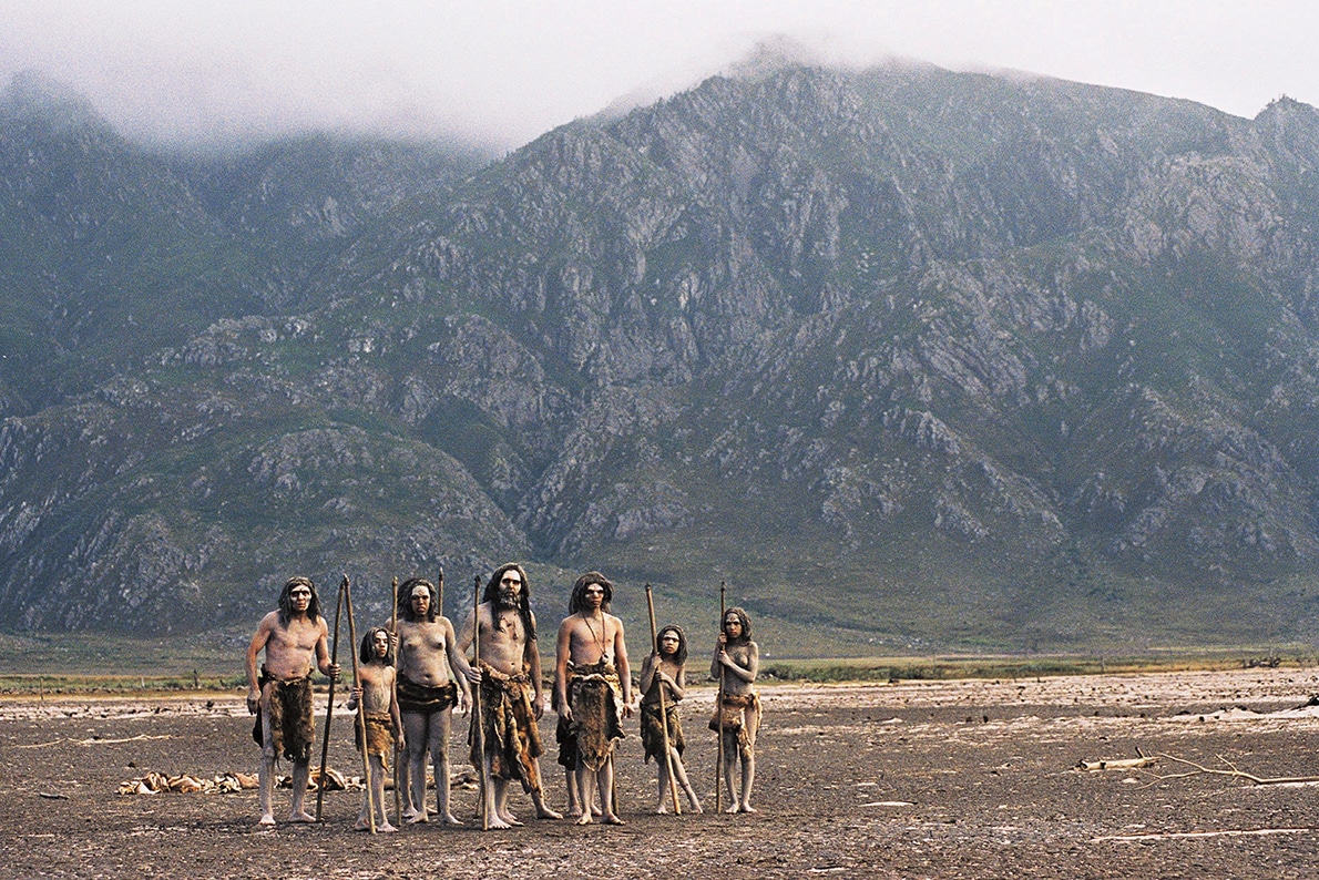 Scène de la vie quotidienne des Homo sapiens préhistoriques, telle qu’imaginée dans un film de Jacques Malaterre de 2004. Photo : Patrick GLAIZE/BOREALES/GAMMA