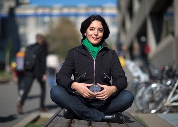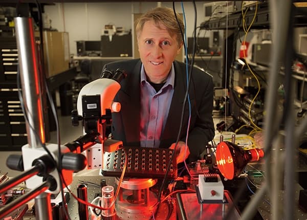 Une puce à peine plus grosse que le chas d’une aiguille. Malgré sa petitesse, celle que le professeur Fafard tient entre ses doigts est la cellule photovoltaïque la plus efficace jamais fabriquée. Jusqu’à 70 % de la puissance lumineuse provenant d’un laser peut y être convertie en courant électrique ! Cela grâce à une microarchitecture nouveau genre.