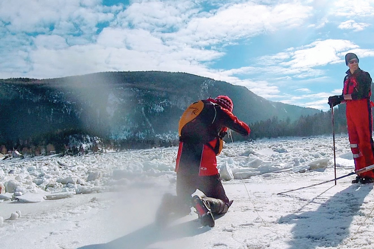Le chercheur Dany Dumont a passé deux hivers à mesurer la force imposée par les vagues à la banquise dans la baie du Ha ! Ha !, en compagnie du scientifique Peter Sutherland. Photo: Dany Dumont
