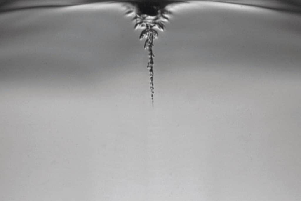Les ultrasons causent la formation de bulles de cavitation (l’espèce de pic que l’on aperçoit en haut).