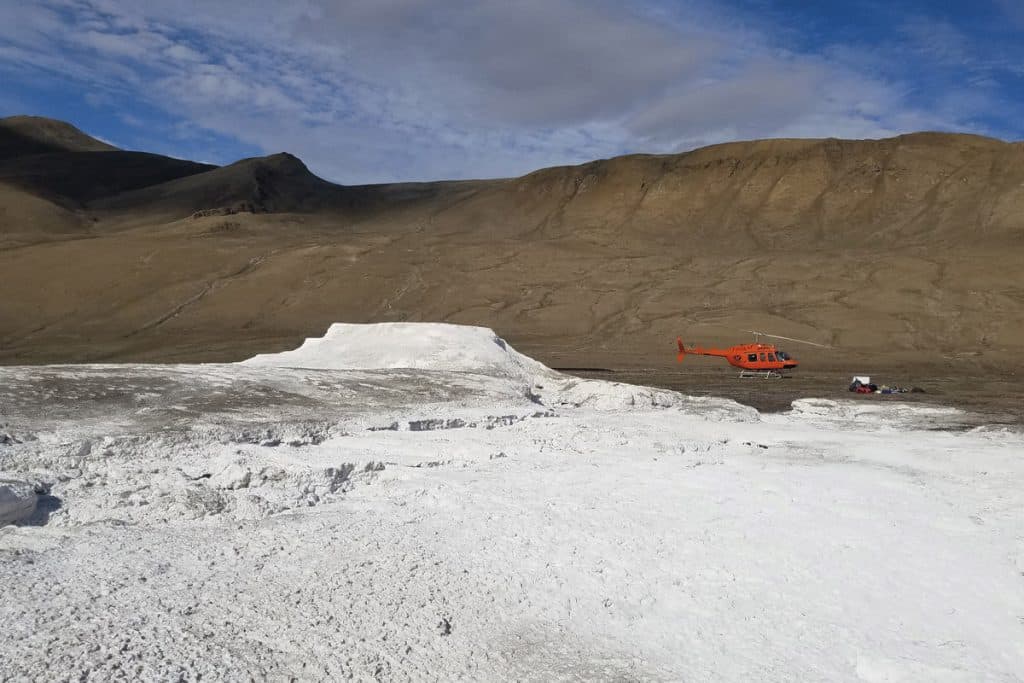 Il faut un hélicoptère pour parvenir à ce monticule de sel de l’île d’Axel Heiberg, au Nunavut.