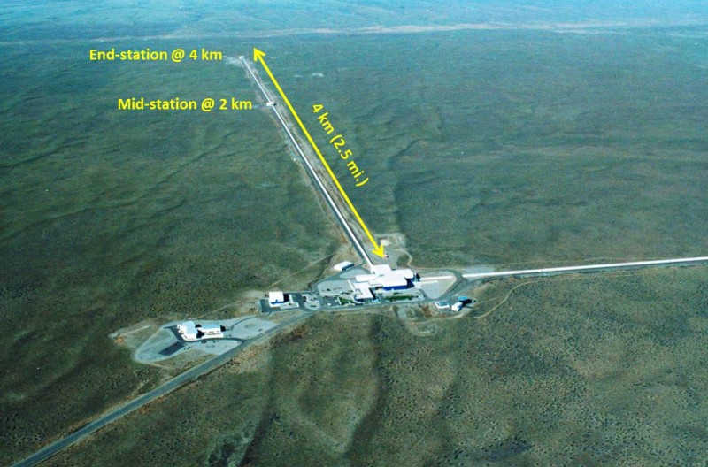 Finalement, c’est l’équipe des détecteurs LIGO (Laser Interferometer Gravitational-Wave Observatory, sur la photo), aux États-Unis, qui a observé des ondes produites lorsque deux trous noirs, respectivement 29 et 36 fois plus massifs que le Soleil, ont fusionné il y a 1,3 milliard d’années, en l’espace de 20 millisecondes. Mise à jour septembre 2017: Une découverte qui a valu à Barry Barish, Rainer Weiss et Kip S. Thorne, responsables de l’expérience LIGO, le prix Nobel de physique 2017.