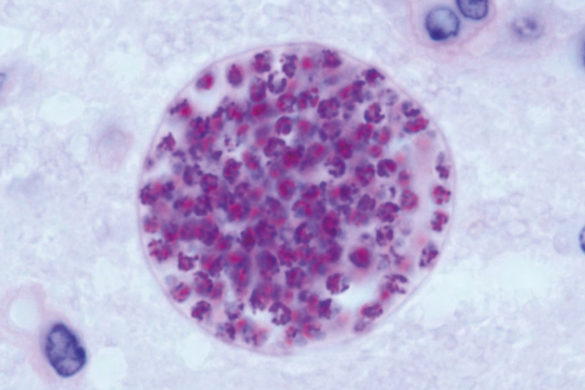 Un kyste de Toxoplasma gondii dans le cerveau d’une souris. Photo: Wikimedia Commons