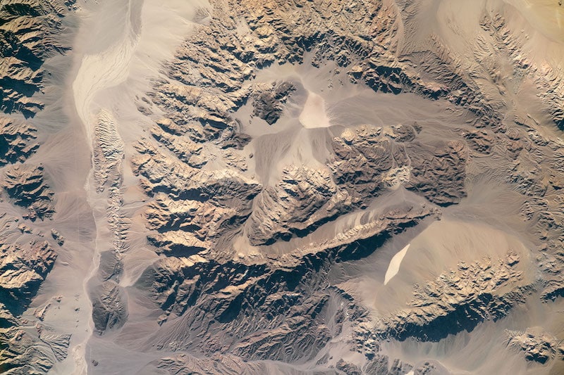 Dunes entourant l’oasis Jubbah en Arabie saoudite. Photo prise de la Station spatiale internationale. Image: NASA-JSC