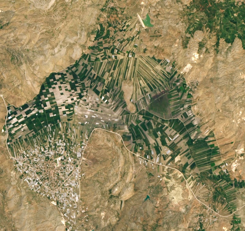 L’agriculture est la principale source de revenus de la Turquie rurale. On compte près de 3 millions d’exploitations agricoles. Le pays est un exportateur important de noisettes, de châtaignes, d’abricots, de cerises, de figues et d’olives. Image: Lauren Dauphin/NASA Earth Observatory