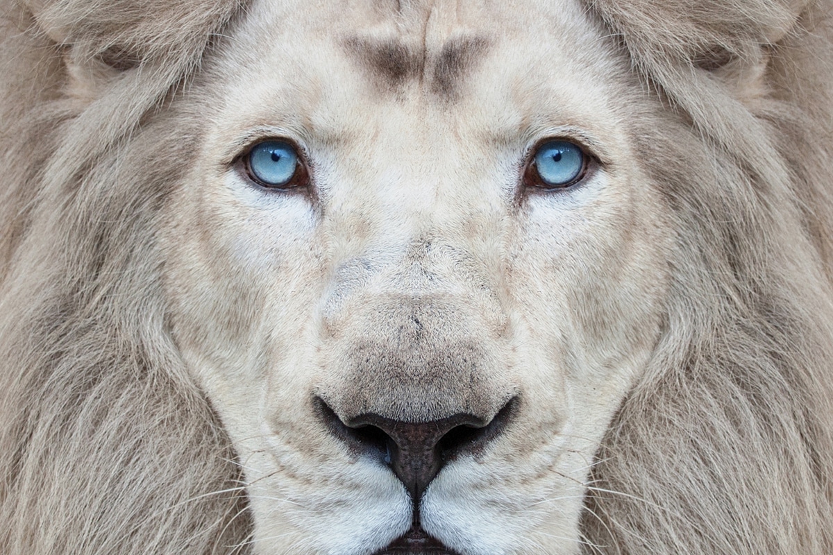 Ce pelage atypique est en effet dû à une mutation génétique que doivent porter et transmettre les deux géniteurs. La mutation, qui perturbe la production de mélanine, a été mise au jour en 2013, après sept ans de recherche par des scientifiques de sept pays, une étude menée avec la fondation de Linda Tucker sous l’expertise de Jason Turner. « Ce n’est pas d’albinisme qu’il s’agit, mais de leucistisme, qui résulte d’un double gène ou allèle récessif », précise le scientifique.Contrairement aux animaux albinos, le lion blanc n’est pas dépourvu de couleur : il a des yeux bleu-gris, vert-gris ou or, des traits noirs sur le nez ainsi qu’une ligne noire sous les yeux et des taches foncées derrière les oreilles. Et malgré son nom, le félin n’a pas toujours la blancheur de la neige ; il peut aussi être de couleur crème.