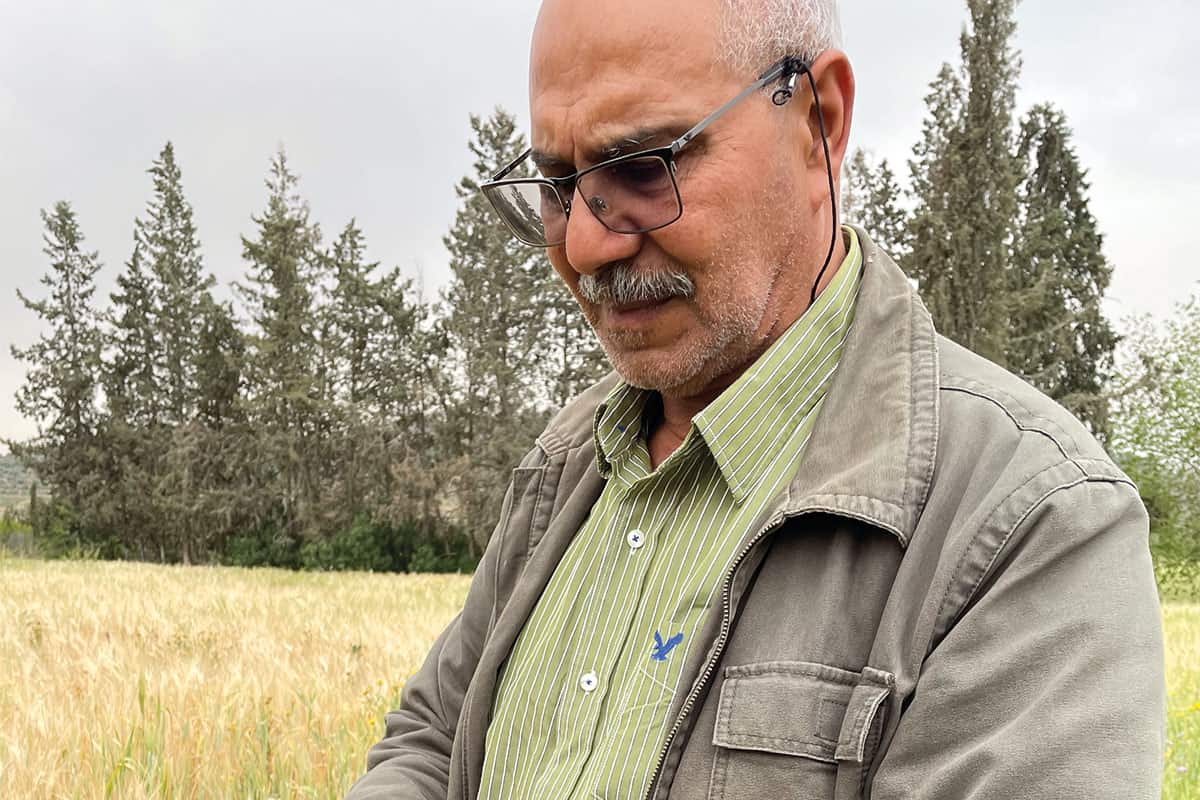 L’agriculteur Ghariani Habib dans son champ de blé Mahmoudi, à Jedaida. Photo: Annie Labrecque