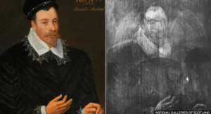 Sur les images ci-dessus, un portrait de Marie Stuart, reine d’Écosse, a été découvert par hasard en 2017 par une conservatrice de l’Institut de Courtald à Londres, qui scannait aux rayons X ce portrait d’homme peint au 16e siècle.
