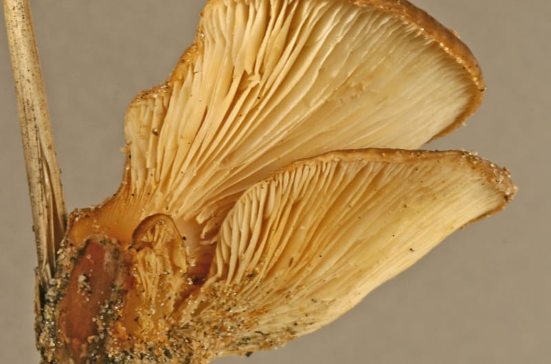 À première vue, on dirait un pleurote, avec sa jolie forme rappelant celle d’un coquillage. S’il fait bien partie de cette famille de champignons, le Hohenbuehelia bonii se distingue toutefois du lot en raison de son appétit pour les nématodes, des petits vers ronds et blancs.