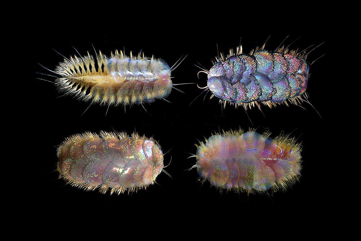 Comme le King , ils ont du charisme et brillent de mille feux. Surnommés vers « Elvis », ces animaux marins du genre Peinaleopolynoe arborent des écailles souples iridescentes qui rappellent les paillettes des costumes de la légende du rock.