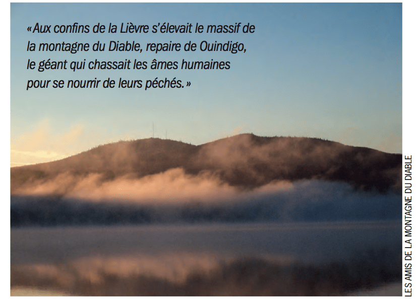 Il y avait là une forêt précieuse comme une tonne d’or, des lacs purs et profonds, des crans de gneiss archaïque, des plages de sable fin, des rivières blanches, des rivières brunes, des animaux sauvages, des collines rondes, des coulées vertes. À partir de l’Outaouais, trois vallées remontaient vers le nord: celle de la Rouge, celle de la Lièvre et celle de la Gatineau. Ces vallées abondaient en pins blancs qui étaient beaux comme les colonnes sacrées d’une cathédrale païenne. Les secrets murmurés des chamanes du lac Chaud nous révèlent qu’aux sources de la Rouge, une montagne tremblait du mouvement des esprits. Il en reste le beau nom de la montagne Tremblante. Aux confins de la Lièvre s’élevait le massif de la montagne du Diable, repaire de Ouindigo, le géant qui chassait les âmes humaines pour se nourrir de leurs péchés. Qui voulait s’y rendre devait passer par le rapide de l’Orignal, sur la Lièvre, ou encore par Grand-Remous et la petite rivière Baskatong, qui signifie «glace pliée».