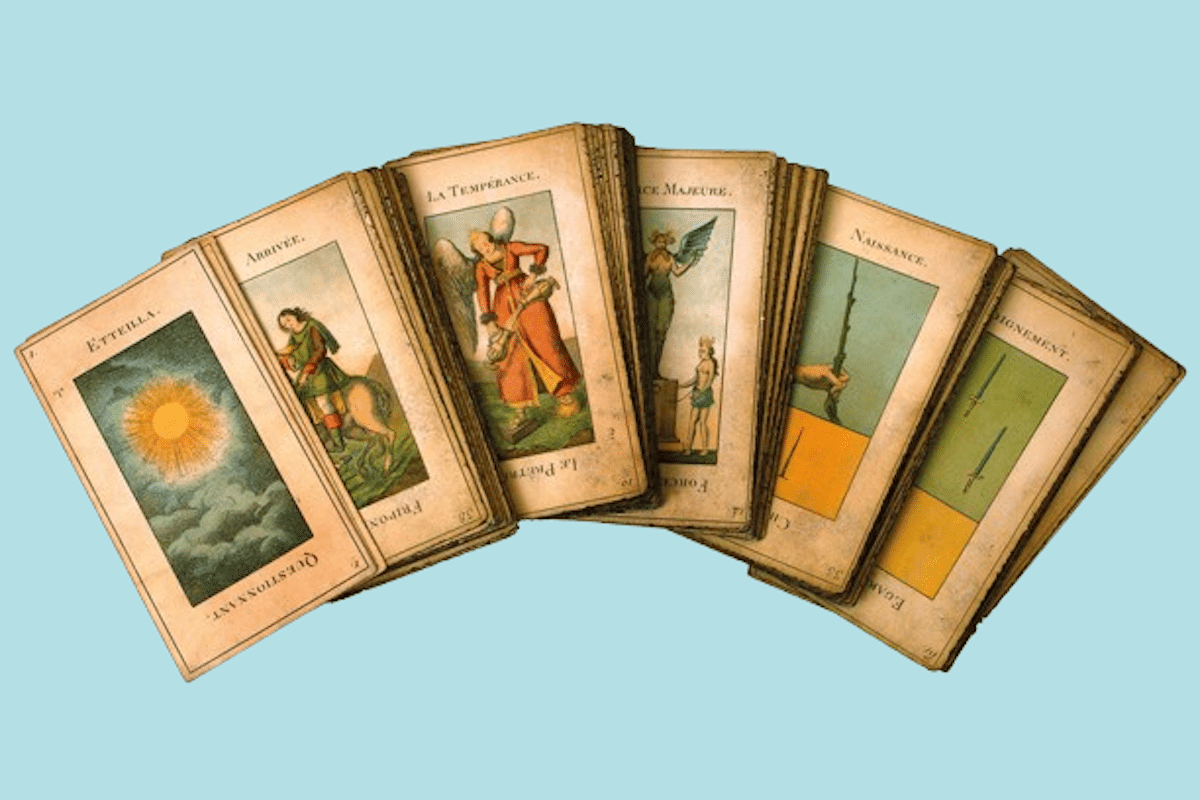 Photo: Jeu de tarot divinatoire Etteilla/Etteilla Tarot Deck. Collection H. Berton – C. Imbert/SEREST