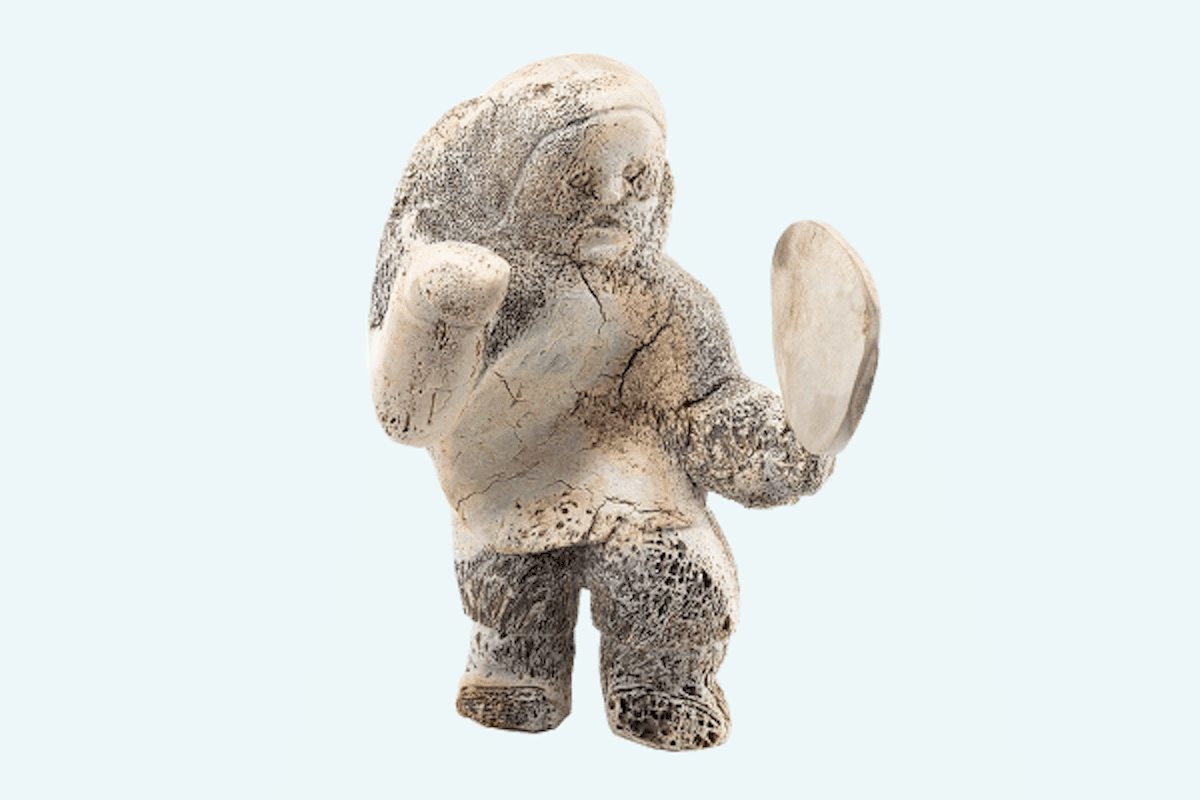 Dans la première, une quarantaine d’objets fabriqués par les mains agiles et créatives des Inuits et que l’anthropologue Bernard Saladin d’Anglure a amassés au fil de ses séjours sont présentés et dévoilent les croyances et le mode de vie de ces hommes et de ces femmes. Parmi ces trouvailles du quotidien, une magnifique combinaison d’hiver ( atajuq ) en caribou destinée à un enfant, des jeux d’osselets et un attrape-poux ( kumatsiuti ). On s’assure de bien lire les compléments d’information pour mieux saisir toute l’ingéniosité des peuples nordiques.