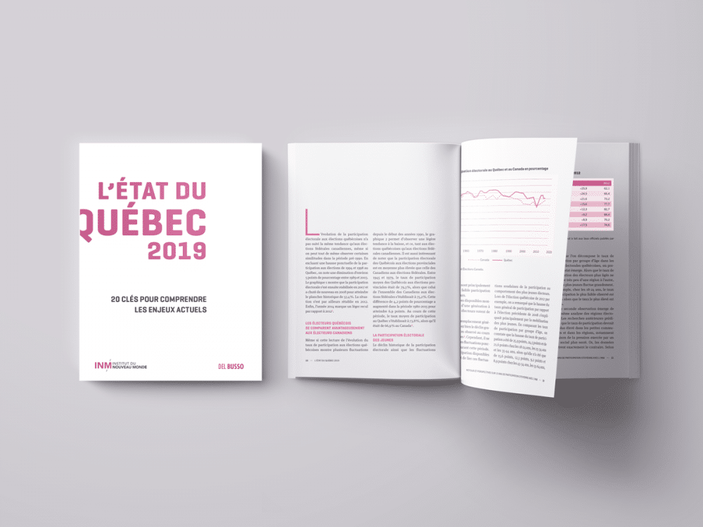 L’état du Québec 2019 , un ouvrage collectif publié par l’Institut du Nouveau Monde dans lequel des experts réfléchissent aux défis sociopolitiques du Québec d’aujourd’hui et de demain. Cette 23 e édition aborde entre autres les changements climatiques, l’antiféminisme, le décrochage scolaire, les impacts sociétaux de l’intelligence artificielle, les paradis fiscaux, le prix des médicaments, les flux migratoires et la culture scientifique, un thème cher à notre magazine.