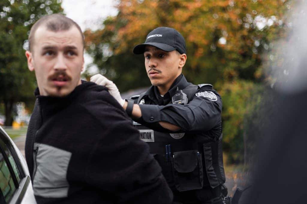 « Monsieur, je vous demanderais de rester assis, s’il vous plaît », entend-on à travers le haut-parleur. Debout dans un corridor en compagnie d’un groupe d’aspirants et aspirantes, j’observe la scène à travers une vitre sans tain. Appelés pour « cris et pleurs » dans le modeste appartement – une réplique utilisée pour les mises en situation sur le campus –, Ahmed Dahamani et sa partenaire, Alexia Pelletier, sont en pleine intervention. « Monsieur, vous êtes en état d’arrestation pour voies de fait. »