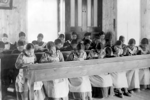Si le Centre national pour la vérité et la réconciliation (CNVR) estime qu’environ 4100 enfants ayant fréquenté les pensionnats n’en sont jamais revenus (un nombre probablement sous-estimé), les proportions monstrueuses du drame ont éclaté au grand jour au printemps 2021. Coup sur coup, plusieurs Premières Nations ont annoncé des chiffres terrifiants après des recherches par géoradar : la nation Tk’emlúps te Secwépemc a rapporté la présence de 215 « tombes d’enfants » sur le terrain de Kamloops, en Colombie-Britannique ; dans la même province, autour de l’ancienne St. Eugene’s Mission School, 182 tombes potentielles ont été détectées par la nation Ktunaxa ; et le nombre de 751 a été avancé par la Première Nation de Cowessess, en Saskatchewan, sur le site de l’ancien pensionnat de Marieval.